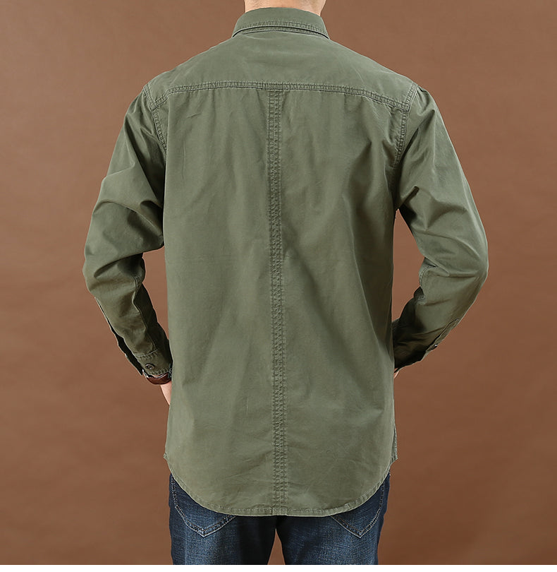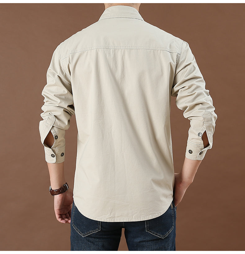 Pure Cotton Casual Shirt Men Oversize Loose Long Sleeve Cargo Shirts Men's Clothing High Quality Solid Tooling Shirt 5XL